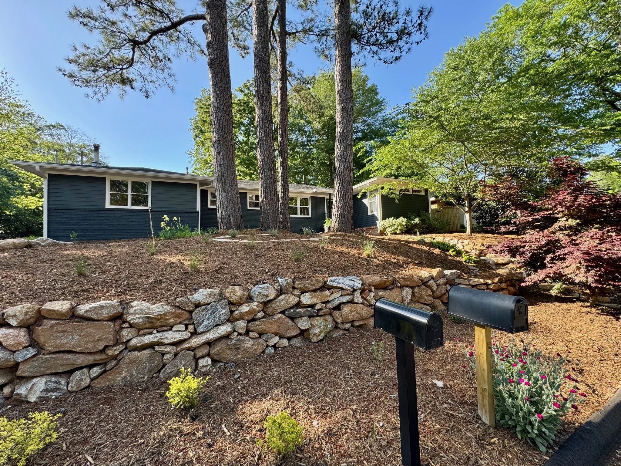 Outside is one the best yards in Fivepoints. So many interesting and comforting elements are here. From the back patio with bench seating, tons of terraces, stonework and so many spots to entertain this is a winner! Native plantings and mature blueberry bushes surround the yard and line some of the unique paths that take you all around this lot that is just shy of a half acre. one of the paths leads you to a great workshop/shed that could easily be converted into living space although it already makes for a perfect hang out spot with a hot tub that overlooks the huge garden area and raised beds.